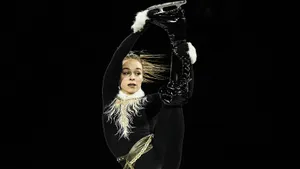 В случае Лары Наки Гутман возвращение к старой соревновательной программе был оправдан. Ее короткая под саундтрек из сериала «Игра в кальмара» полюбилась многим зрителям, а тема и яркая хореография как раз подходят для показательных выступлений. Тем более Лара немного переработала постановку, добавила элементов шоу в начало — выехала в черном плаще и маске, после чего и начала показывать сам номер.