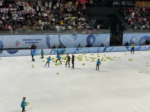 Но группа поддержки Камилы зашла слишком далеко. На турнире дуэтов после выступления Валиевой/Кондратюка фанаты устроили мощный игрушкопад, забросав лед черепашками.