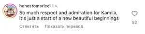 «Я так уважаю и восхищаюсь Камилой, это всего лишь начало нового прекрасного пути».