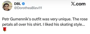 «Наряд Петра Гуменника был очень необычным. Его кофта усыпана лепестками роз. Мне понравился его стиль катания».