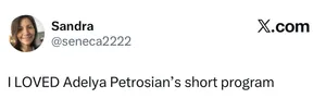 «Аделия Петросян так круто откаталась, что заставила этих тупоголовых комментаторов сказать хорошие вещи о себе и русских фигуристках. Это было великолепно».