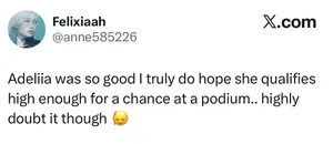 «Аделия была так хороша, я искренне надеюсь, что она поднимется достаточно высоко, чтобы получить шанс на подиум…хотя очень сомневаюсь в этом».