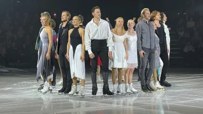 Закрывали отделение Навка и Костомаров. Несмотря на протезы, фигурист смог откатать часть знаменитого номера под «Кармен», который принес паре золото в танцах на льду.