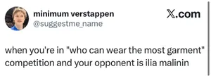 — Когда ты участвуешь в конкурсе «кто сможет надеть на себя больше всего одежды», но твоим соперником является Илья Малинин.