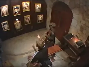 Для шестого ключа Гвендалю Пейзера надо было угадать, за каким из портретов тот спрятан. Фигуриста пытался сбить с толку пират, отчасти ему это удалось — из кельи Гвендаль вышел ни с чем.