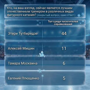 Лучшим тренером, по мнению опрошенных посетителей этапов Гран-при, является Этери Тутберидзе: ее назвали 44% опрошенных зрителей этапов Гран-при. Далее с заметным отрывом следуют Алексей Мишин (11%), Тамара Москвина (6%) и Евгений Плющенко (5%).