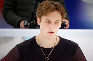 Матвей Ветлугин под «Боже, Царя храни!» сделал красивый квад-ритт, затем упал с четверных лутца и флипа. Но больше себе ошибок не позволял.