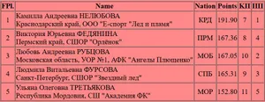 В турнире одиночниц вчера случилось редчайшее событие — две девушки показали идентичный результат вплоть до сотой! Но благодаря более высокой оценке за технику номинально лидирует Дина Хуснутдинова, за ней идет Софья Муравьева. И менее балла уступают им Дарья Садкова и Анна Фролова.