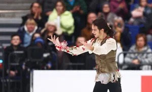 Семен Соловьев с прыжками справился, а вот на вращениях сплоховал — одно получило 2-й уровень, другое вообще 1-й. Звучала «Анна Каренина».