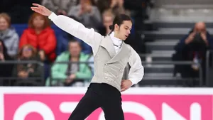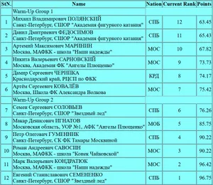 Завоевавший право поехать в Милан Петр Гуменник после прокатов взял небольшой отпуск, этап в Москве — его первый старт за два месяца. Сейчас ждать каких-то вау-выступлений от петербуржца вряд ли стоит, тем не менее в короткой программе он пошел на максимум (флип, лутц, аксель). Чисто откатать не удалось, но от лидеров фигурист недалеко — меньше пяти баллов уступает Евгению Семененко.
