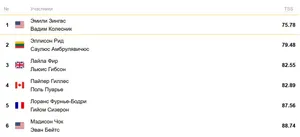 Эмили Зингас/Вадим Колесник показали «Ромео и Джульетту» Сергея Прокофьева. Яркая программа, но каталась немного зажатыми. А вращение не додержали — только 2-й уровень.