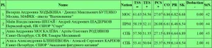 Анна Москалева и Артем Родзянов остались без чистого параллельного сальхова (партнерша недокрутила на две галки и упала). Еще и вращение отминусовано.