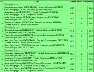 Что же это такое… Опять куча ошибок, на этот раз не удалось откатать чисто Анастасии Мухортовой и Дмитрию Евгеньеву. Чтобы вы понимали: лучшими за технику до сих пор идут открывавшие парный турнир Блинникова/Карпов.