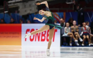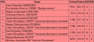 Арина Кудлай откатала без грубых ошибок, лишь на финальном флипе найден недокрут. Пока возглавляет протокол — 126,2 / 187,18.