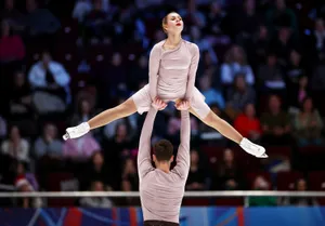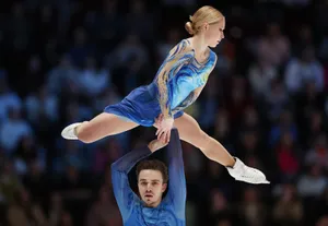 Таисия Линчевская и Дмитрий Щербаков допустили падение между элементами, жаль.