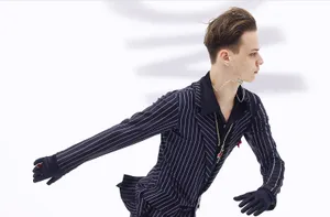 Мощно начал Никита Сарновский — два квад-лутца (один в каскаде), квад-сальхов. Потом пошли косяки — касание льда на трикселе, второй триксель со степ-аутом и потерей каскада, отминусованный каскад 3-3.