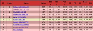 Натали Лангербаур получает лучшие баллы в карьере — 56,21. По технике Яковлевой проиграла (прыгала каскад 3-2, но во второй половине), помогли компоненты.