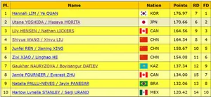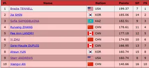 Ханна Лим и Е Цюань в некоторых прогнозах должны были быть здесь в тройке, но неудача в ритм-танце отбросила их вглубь протокола.Сегодняшний прокат под «Адажио» позволит им отыграть несколько позиций — 110,92 / 176,97.