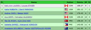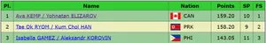 Изабелла Гамес и Александр Коровин продолжают искать чистые прокаты. Сегодня с ошибками все прыжковые — падение с выброса-ритта, степ на выбросе-сальхове, неуверенный параллельный сальхов и комбинация с «бабочками».