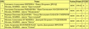 Очень много ошибок у Вероники Меренковой и Даниля Галимова. Падают на последнюю строчку — 112,51 / 173,48.