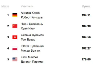 Хорошо шли экс-россияне Карина Акопова и Никита Рахманин. Но в самом финале сорвали поддержку, увы.
