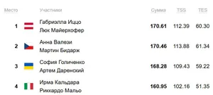 В парах после короткой программы сложилось двоевластие — меньше балла между Минервой Фабьенн Хазе/Никитой Володиным и Анастасией Метелкиной/Лукой Берулава. А на промежуточном третьем месте расположились Лиа Перейра/Треннт Мишо, и это небольшая сенсация: позади них и венгры Мария Павлова/Алексей Святченко, и американцы Алиса Ефимова/Миша Митрофанов.