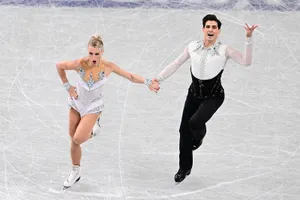Хозяева льда Катерина Мразкова и Даниэль Мразек зажгли! Если вдруг вы до сих пор не в курсе, часть их ритм-танца поставлена на музыку, созданную искусственным интеллектом (в стиле Bon Jovi). Другая же отдана AC/DC.