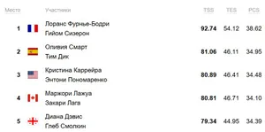 Лоранс Фурнье-Бодри и Гийом Сизерон лидируют после ритм-танца.