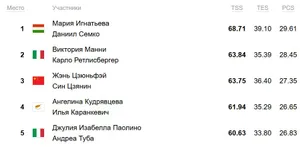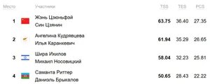 Кристина Каррейра и сын наших великих чемпионов Энтони Пономаренко влетают на промежуточную вторую строчку — 80,89. «Сизн бест» обновили, но вот до карьерного не дотянули.