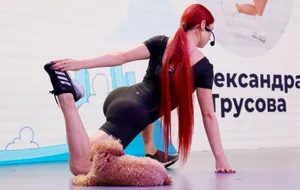 Трусова впечатлила идеальной фигурой, села на шпагат, поцеловала собаку. Главные фото необычной встречи с фанами