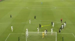 Коста знает, что передача пойдет четко на «11 метров», и стремится ровно туда. При этом на точке уже стоит Са — его функция интереснее.