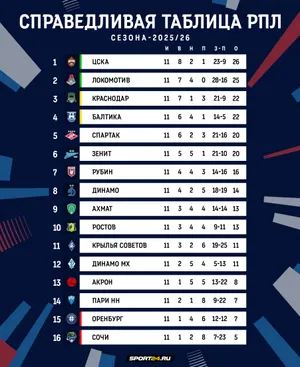 Сначала вспомним официальную таблицу РПЛ. В ней могут быть судейские ошибки.