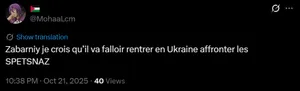 @MohaaLcm: «Забарный, я думаю, что ему надо вернуться на Украину, чтобы сразиться со спецназом».