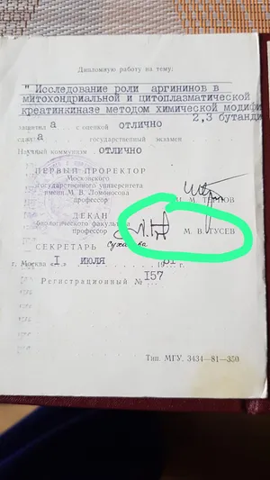 — Моя мама заканчивала биофак МГУ. Вчера прислала фото своего диплома. Узнаете же подпись?