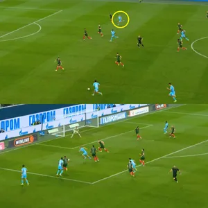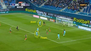 При контратаках Глушенков часто смещался в левый полуфланг, где защитники его не ждали. Именно такое смещение привело к голу — Глушенков на 9-й минуте хорошо открылся и отдал на Педро: