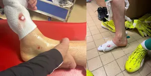 Нога Шевалье после столкновения с Ламином Камарой