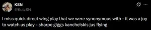 @KulzSN: «Я скучаю по быстрой игре на флангах, которая была нашей визитной карточкой — было радостью смотреть, как мы играем — Шарп, Гиггз, Канчельскис просто летали по полю».