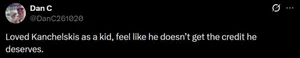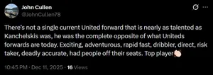 @JohnCullen78: «Среди нынешних атакующих игроков «Манчестер Юнайтед» нет ни одного, кто был бы хотя бы близко по таланту к Канчельскису. Он был полной противоположностью сегодняшних атакующих футболистов «Манчестер Юнайтед». Захватывающий, смелый, быстрый, техничный, прямой, рисковый, смертельно точный, он заставлял зрителей вскакивать со своих мест. Лучший игрок».