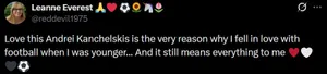 @reddevil1975: «Я обожаю Андрея Канчельскиса, именно благодаря ему я влюбилась в футбол, когда была молодой… И до сих пор он значит для меня все».