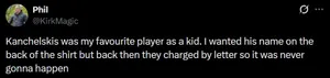 @KirkMagic: «В детстве Канчельскис был моим любимым игроком. Я хотел, чтобы его имя было на спине футболки, но в то время за каждую букву брали отдельную плату, поэтому это было невозможно».