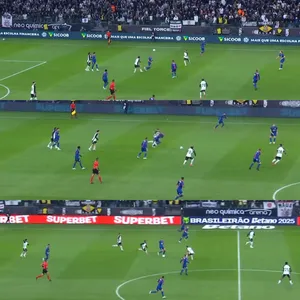 Пример из матча с «Коринтиансом»: Джон в одно касание перекинул соперника, на движении обогнал второго и разогнал опасную атаку.