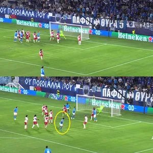 Так «Пафос» забил «Монако» в ЛЧ: игроки скучковались на дальней штанге, а потом разбежались по позициям. В итоге в центр штрафной ворвался Давид Луиз, который и забил гол.