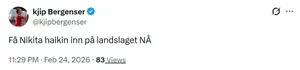 @kjipbergenser: «Включите Никиту Хайкина в состав национальной сборной сейчас же».