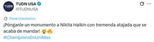 @TUDNUSA: «Поставьте памятник Никите Хайкину за его потрясающий сейв!»