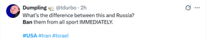 «Почему они не банят США и Израиль, как это сделали с Россией?»