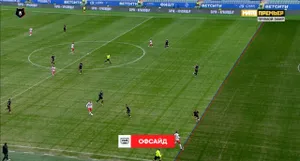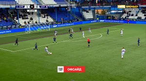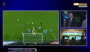 Форвард «Акрона» сравнял счет в конце первого тайма, но после продолжительной проверки ВАР (около 4 минут) гол был отменен из-за офсайда. Этот эпизод также вызвал много споров из-за качества показанных офсайдных линий. По картинке трудно сказать, справедливо ли гол был отменен:
