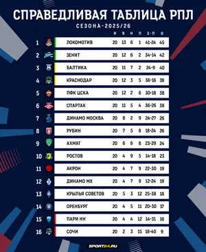 Сначала вспомним официальную таблицу РПЛ. В ней могут быть судейские ошибки.