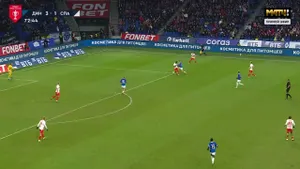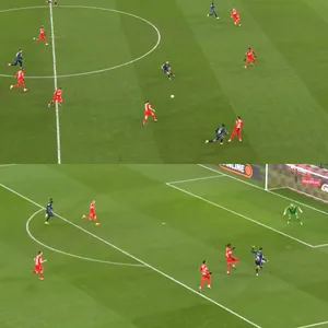 Маухуб по центру поля несется за спиной у Джику: африканский защитник остался далеко позади в финальной трети.