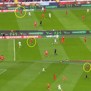 Эксперимент Карседо мог сложиться удачнее, если бы не проблемный левый центральный защитник Джику. Во всех эпизодах первого тайма он не сумел подстраховать Жедсона, неудачно располагаясь позиционно.