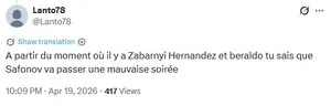 @Lanto78: «Как только на поле появляются Забарный, Эрнандес и Беральдо, становится ясно, что у Сафонова будет тяжелый вечер».